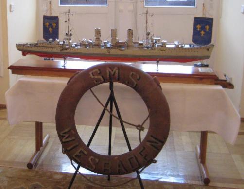 Das in den frühen Morgenstunden des 01. Juni 1916 dieser großen Seeschlacht vorm Skagerrak gesunkene Patenschiff unserer Heimatstadt Kleiner Kreuzer "SMS Wiesbaden"